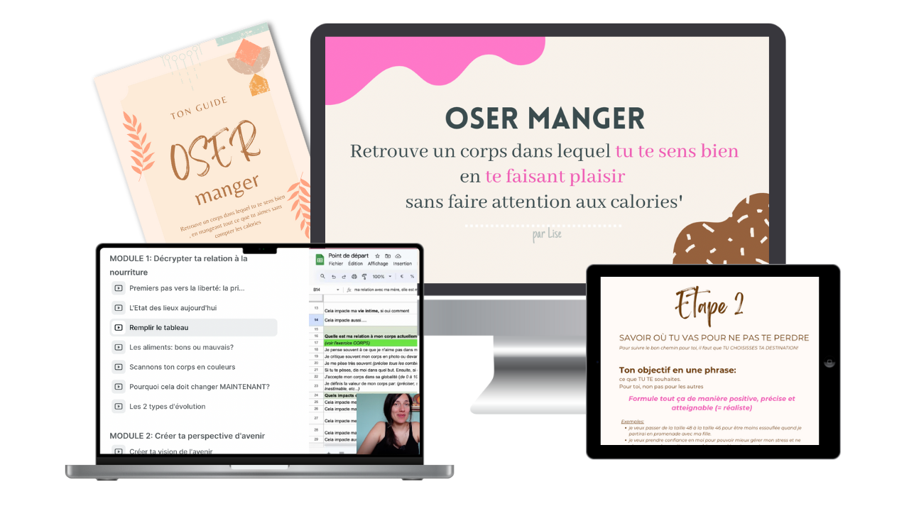 La méthode étape par étape pour retrouver un corps dans lequel tu te sens bien, manger ce que tu aimes sans culpabiliser et te libérer de ton obsession alimentaire sans avoir à passer par la case régime!